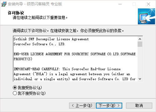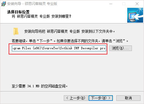 3、默認安裝目錄【C:\Program Files (x86)\SourceTec\Sothink SWF Decompiler pro】;