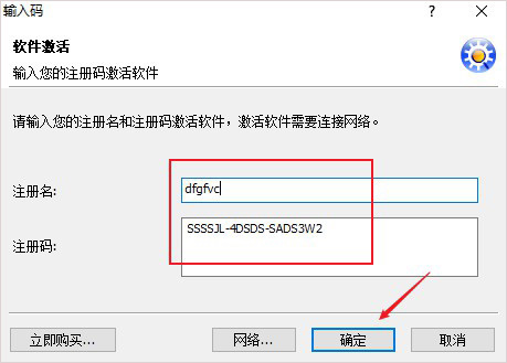7、注冊名任意填寫,將ssskjl-1dsda-212dasa,ssssjl-4dsds-sads3w2填入注冊碼欄中,點擊確認即可;