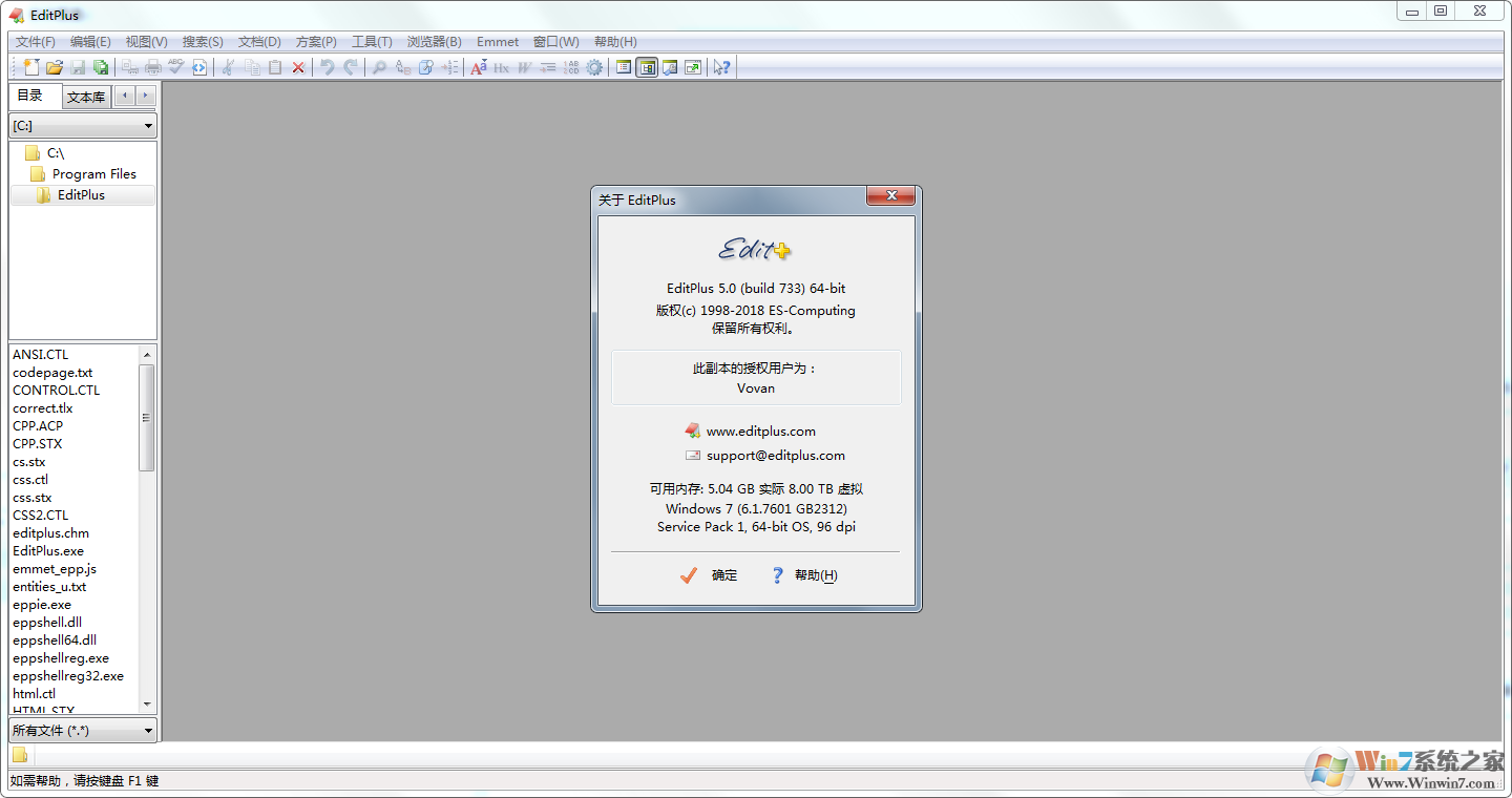 9、如此,我們可以看出EditPlus 5已經(jīng)安裝并注冊成功了!