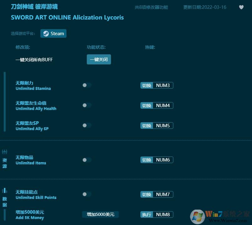 刀劍神域彼岸游境八項(xiàng)修改器是一款功能強(qiáng)大專門為廣大游戲玩家提供的游戲輔助工具,可以幫助廣大游戲玩家有效的提升游戲體驗(yàn)。改編自日本同名動(dòng)漫,是一款動(dòng)作冒險(xiǎn)類電腦游戲。在動(dòng)漫中玩家角色就有等級的限制,而玩家們對于刷等級這種枯燥乏味的事都比較抵觸但是又無可奈何沒有辦法,這時(shí)候大家就可以使用這款修改器。修改器中有著無限經(jīng)驗(yàn)的功能可以讓廣大游戲玩家跳過刷機(jī)這個(gè)枯燥乏味的環(huán)節(jié),直接去享受游戲其他非常有意思的內(nèi)容。玩家在刷怪時(shí)會(huì)面臨因?yàn)椴僮魇д`而出現(xiàn)被野怪擊殺的情況,在這個(gè)時(shí)候玩家就可以使用修改器中的無限生命功能來緩解這種尷尬的局面,擁有無限生命之后大家就可以先和野怪拉開距離再關(guān)閉修改器功能,這樣既不會(huì)因?yàn)橛螒螂y度降的太低而導(dǎo)致沒有意思,也不會(huì)因?yàn)楸粨魵⒍绊懙酵婕业挠螒蝮w驗(yàn)。更有意思的是這款游戲還可以修改隊(duì)友的生命值,可以讓隊(duì)友也擁有無限生命這是很多修改器所不具備的功能之一。刀劍神域彼岸游境修改器功能可以說是多種多樣,你想要的在這里全部應(yīng)有盡有,適用于游戲各個(gè)不同的環(huán)境場景。并且使用起來還非常的方便,用戶只需要按下對應(yīng)的快捷鍵就可以進(jìn)行使用這個(gè)功能。感興趣的玩家朋友們可以來下載體驗(yàn)一下這款強(qiáng)大無比的游戲修改器!