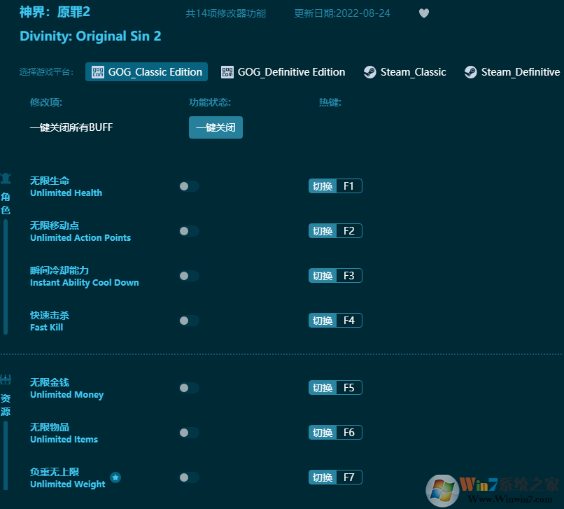 3、運(yùn)行“神界:原罪2”游戲4、游戲運(yùn)行后點(diǎn)擊“加個(gè)Buff"按鈕,當(dāng)然大家也可以進(jìn)行單項(xiàng)修改