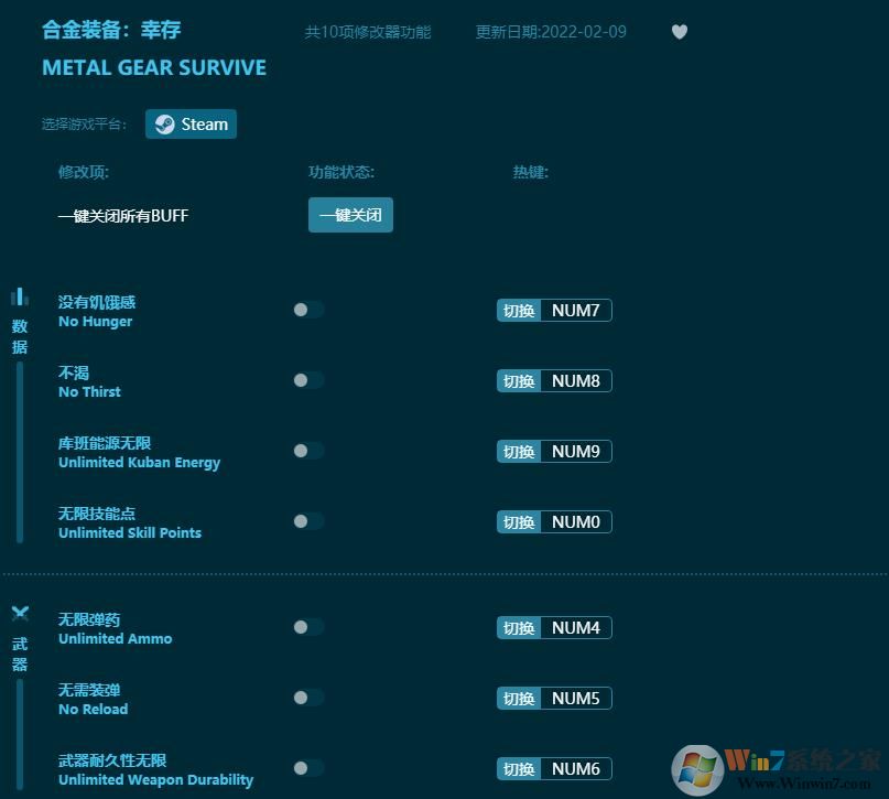 3、運行“合金裝備:幸存”游戲4、游戲運行后點擊“加個Buff"按鈕,當然大家也可以進行單項修改