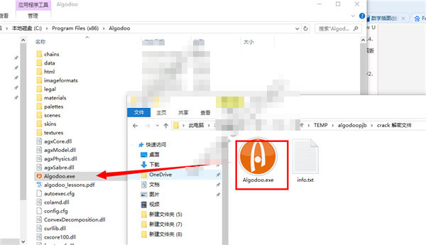 1、找到解壓后的crack 解密文件文件夾下的程序,覆蓋到安裝目錄中,見(jiàn)下圖所示:
