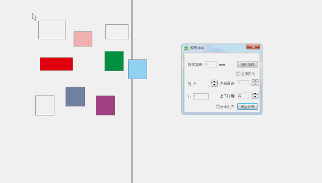 在CorelDRAW 里面你能通過(guò)快捷鍵快速頂端、底端、中心、左邊、右邊等模式對(duì)齊,而PY插件則可以按照列和行的分布來(lái)進(jìn)行多個(gè)圖形的對(duì)齊,見下圖面動(dòng)圖操作: