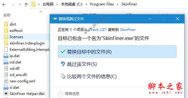 2、復(fù)制Crack UZ1文件夾中補(bǔ)丁到安裝目錄下覆蓋,默認(rèn)C:\Program Files\SkinFiner,見(jiàn)下圖: