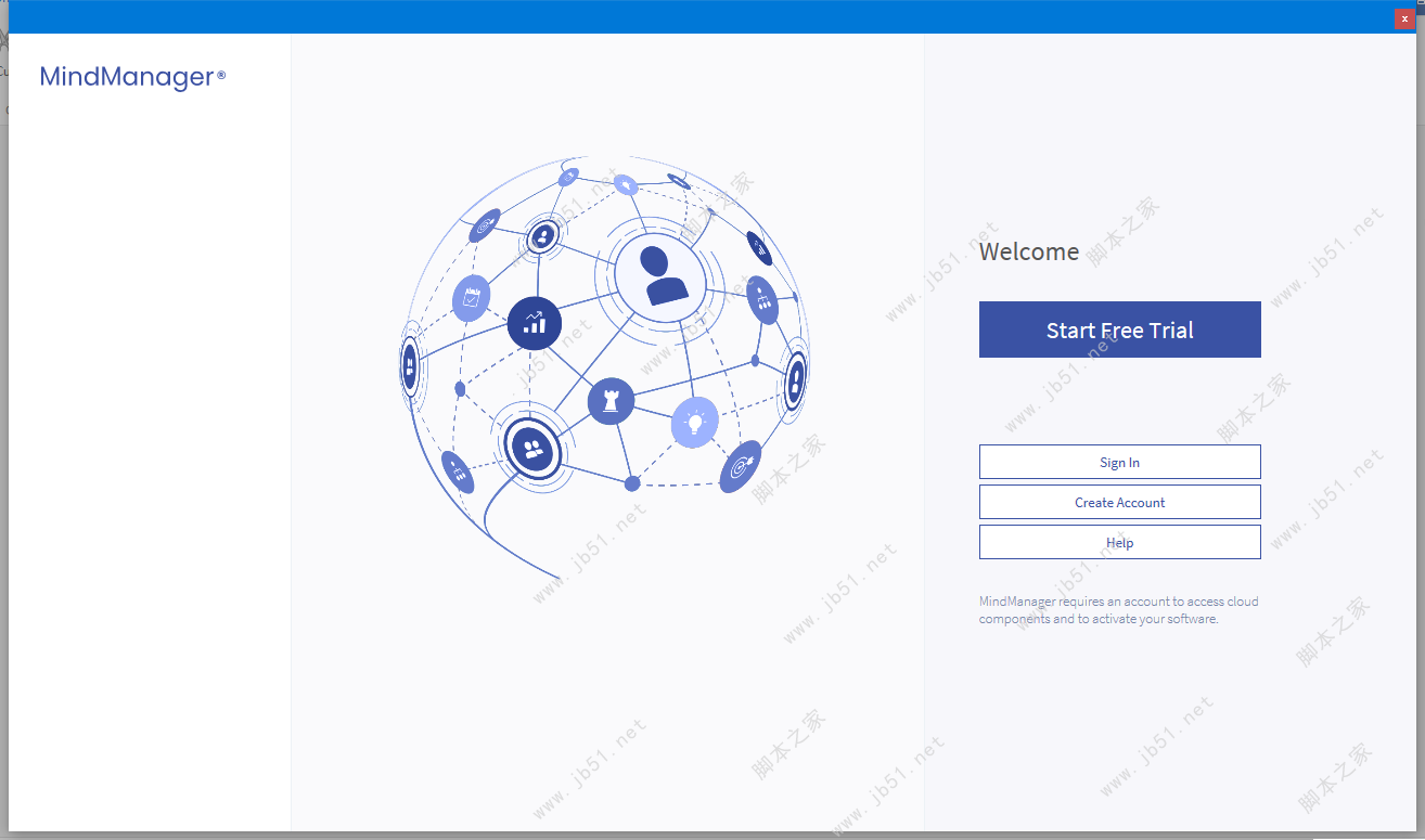 7、打開MindManager 2021程序開始使用吧,2021版本需要登錄后才可以使用,所以先登錄吧,沒有賬號(hào)的伙伴需要注冊(cè)一下