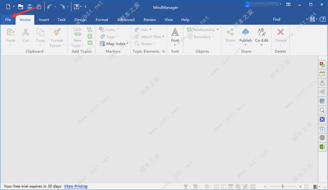 8、這里我們可以看到 MindManager 21界面是英文語言,我們來設(shè)置一下中文模式: