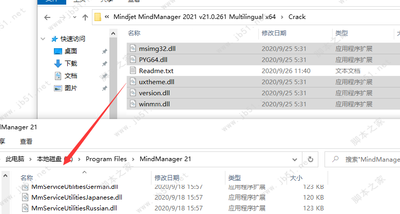 2、將MindManager 2021 破解補(bǔ)丁文件全部復(fù)制下來(除了Readme.txt之外),并粘貼到MindManager 2021 安裝根目錄中(快速打開根目錄小技巧:在桌面找到MindManager 2021 快捷方式,右擊——打開文件位置)
