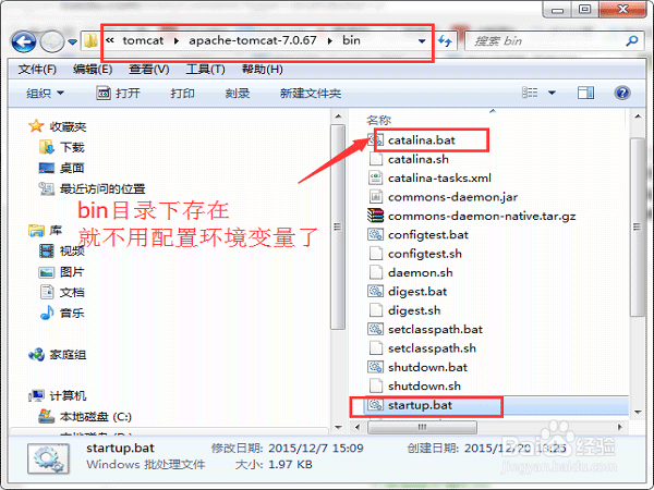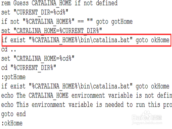 2、以前的版本都需要配置環(huán)境變量。不過(guò)貌似tomcat7.0后都不需要配置了(反正現(xiàn)在安裝7.0的解壓版和安裝版都不需要配置環(huán)境變量都成功了),用EditPlus打開(kāi)bin目錄下的startup.bat,可以看到如下原因 if exist "%CATALINA_HOME%\bin\catalina.bat" goto okHome 意思是bin目錄下存在catalina.bat文件就可以訪問(wèn)tomcat頁(yè)面了,代表著安裝成功了。,見(jiàn)下圖所示: