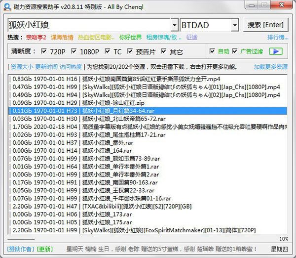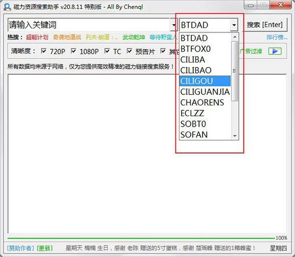 點(diǎn)擊主窗口最下方的“更新”按鈕,即可更新最新版的磁力資源搜索助手。