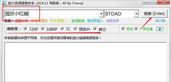 磁力資源搜索助手是一款多渠道磁力資源搜索神器,內(nèi)置強(qiáng)大的磁力搜索引擎,集合了多個(gè)資源庫,確保了資源搜索的豐富性,只需要輸入關(guān)鍵詞,選擇資源庫就能夠快速開始搜索你想要的資源,百度搜索不到的資源也可以找到,搜索到鏈接后,支持一鍵復(fù)制,配合迅雷等各種下載軟件即可實(shí)現(xiàn)免費(fèi)、高速下載!并能夠?qū)㈡溄臃窒斫o好友一同下載使用,軟件綠色免安裝,無牛氓插件,解壓即用,滿足不同需求用戶的不同要求!