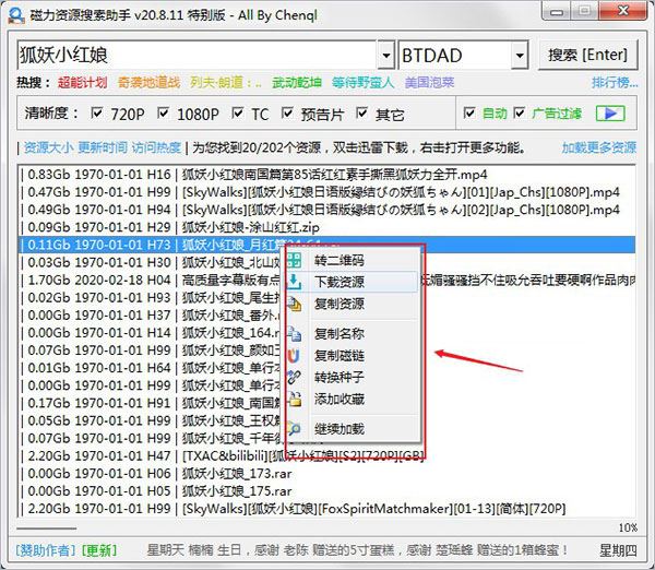 右擊搜索結(jié)果列表資源,選擇“轉(zhuǎn)二維碼”即可把磁力鏈接轉(zhuǎn)換成二維碼圖片,使用手機(jī)下載軟件掃描,即可實(shí)現(xiàn)手機(jī)下載資源。