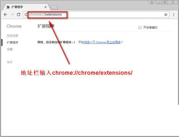 1、打開谷歌瀏覽器地址欄輸入chrome://chrome/extensions/