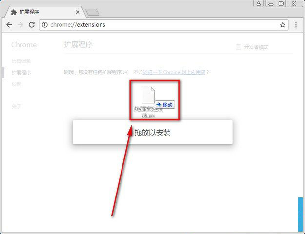 2、將下載的文件拖拽至以上打開的頁面即可添加
