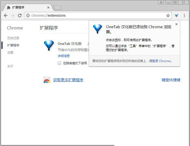 Chrome OneTab擴展插件是一款可以有效解決 Chrome 瀏覽器內(nèi)存占用過多的問題的一款超級給力的插件工具,使用簡單,安裝完成后點擊一下擴展圖標(biāo),擴展的功能會將當(dāng)前打開的標(biāo)簽關(guān)閉,顯示在擴展頁的標(biāo)簽列表中,相當(dāng)于只打開一個標(biāo)簽,內(nèi)存占用瞬間變成了100M左右,有效提升用戶瀏覽體驗!