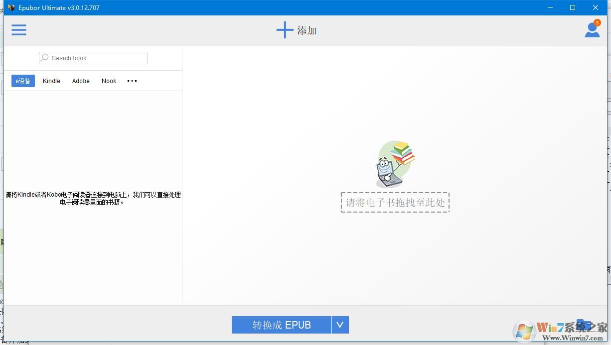 Epubor Ultimate 將自動(dòng)檢測(cè)設(shè)備并在左欄中顯示所有下載的書(shū)籍。 該程序還可以自動(dòng)加載存儲(chǔ)在計(jì)算機(jī)上安裝的電子閱讀應(yīng)用程序中的書(shū)籍。該程序支持市場(chǎng)上的主要電子閱讀器,包括 Kindle Paperwhite,Kindle Voyage,Kindle Oasis,Nook,Kobo 等。 程序支持電子閱讀應(yīng)用程序包括用于 PC/Mac 的Kindle,用于 PC/Mac 的 Adobe Digital Editions,用于 PC 的 Nook 和用于 PC/Mac 的 Kobo。