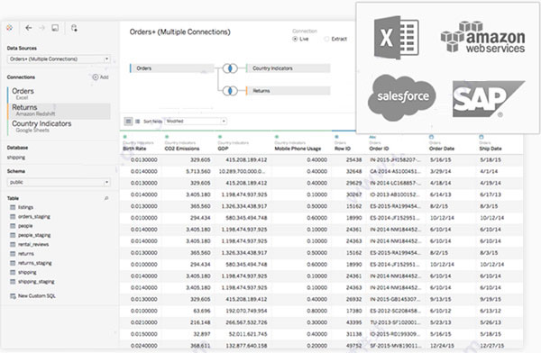 連接本地或云端數(shù)據(jù) — 無論是大數(shù)據(jù)、SQL 數(shù)據(jù)庫、電子表格還是類似 Google Analytics 和 Salesforce 的云應(yīng)用。無需編寫代碼,即可訪問和合并離散數(shù)據(jù)。高級(jí)用戶可以透視、拆分和管理元數(shù)據(jù)實(shí)現(xiàn)優(yōu)化數(shù)據(jù)源。分析始于數(shù)據(jù)。通過 Tableau 更好地利用自己的數(shù)據(jù)。