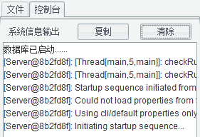 點(diǎn)擊菜單“本地應(yīng)用”->“啟動(dòng)示例數(shù)據(jù)庫(kù)”,左側(cè)的控制臺(tái)會(huì)輸出“數(shù)據(jù)庫(kù)已啟動(dòng)”信息,表示demo數(shù)據(jù)源所需連接的HSQL數(shù)據(jù)庫(kù)已啟動(dòng)。