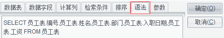 進(jìn)入SQL編輯器后,可以根據(jù)需要切換不同的Tab頁(yè),選擇要查詢的數(shù)據(jù)表、數(shù)據(jù)字段、檢索條件等,切換到語(yǔ)法Tab頁(yè)可以看到最終拼接好的SQL語(yǔ)句。當(dāng)然也可以直接在這里寫(xiě)SQL語(yǔ)句,SQL語(yǔ)句執(zhí)行返回的結(jié)果就是我們制作報(bào)表需要的數(shù)據(jù)集。