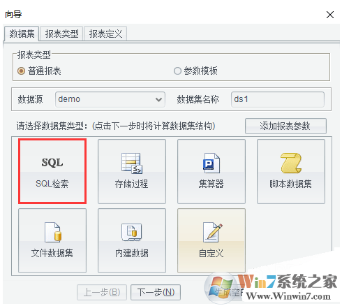 這里我們用demo數(shù)據(jù)源,制作一個(gè)普通報(bào)表,如上圖所示選擇報(bào)表類型,數(shù)據(jù)源和數(shù)據(jù)集類型、數(shù)據(jù)集名稱可以默認(rèn),也可以自定義,選擇完以后,點(diǎn)擊【下一步】,通過(guò)向?qū)Ь庉婼QL數(shù)據(jù)集。