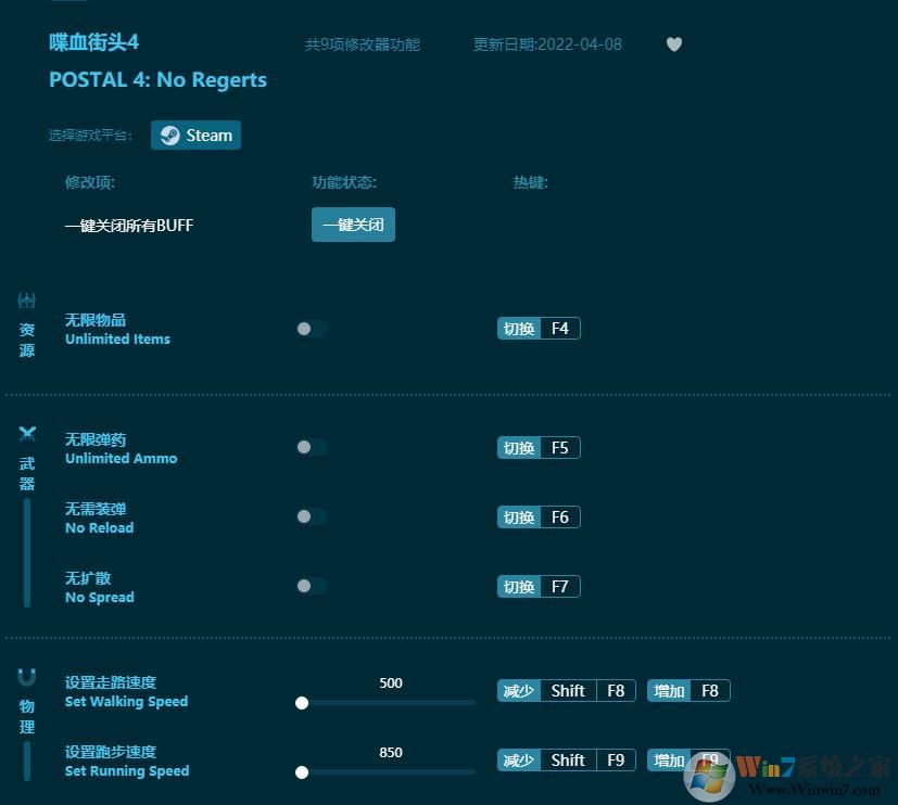 3、運行“喋血街頭4”游戲4、游戲運行后點擊“加個Buff"按鈕,當然大家也可以進行單項修改