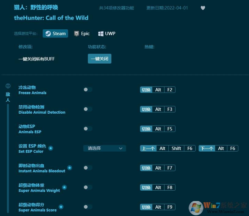 3、運行“獵人:野性的呼喚”游戲4、游戲運行后點擊“加個Buff"按鈕,當(dāng)然大家也可以進(jìn)行單項修改
