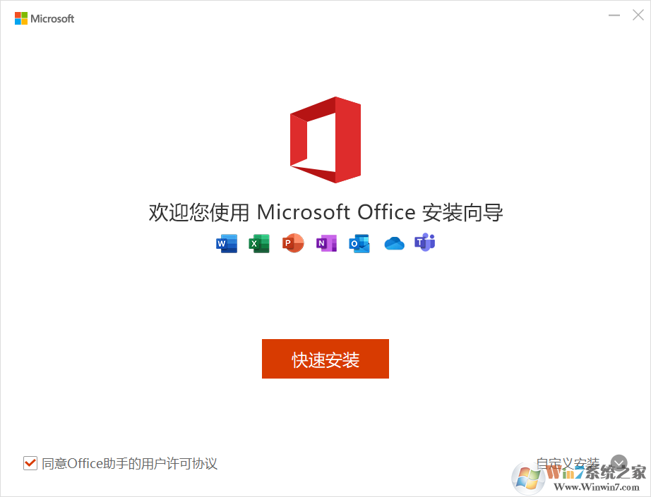 1、下載本站提供的在線安裝包,然后雙擊打開(kāi),之后出現(xiàn)Office365安裝助手,接下去點(diǎn)擊快速安裝。