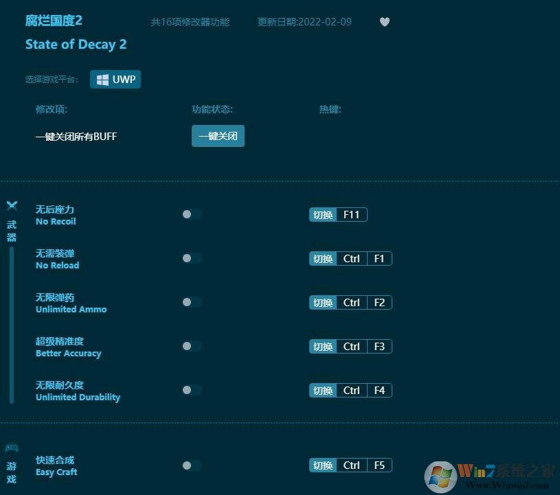 以上便是winwin7下載小編給大家分享介紹的腐爛國度2修改器,對廣大《腐爛國度2》游戲玩家來說是非常不錯的一個選擇!