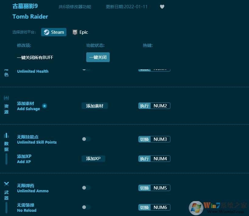 以上便是winwin7下載小編給大家分享介紹的古墓麗影9六項修改器,對廣大《古墓麗影9》游戲玩家來說是非常不錯的一個選擇!