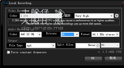到這里已經(jīng)基本設(shè)置OK了,如果你想錄視頻的話點擊“廣播”“錄制視頻”,第一次會彈出錄制視頻的品質(zhì)設(shè)置,按照下圖的設(shè)置,上傳到優(yōu)酷的視頻就已經(jīng)是超清的了。電腦硬件不是很好的,可以適當調(diào)低畫質(zhì),和最大碼率。