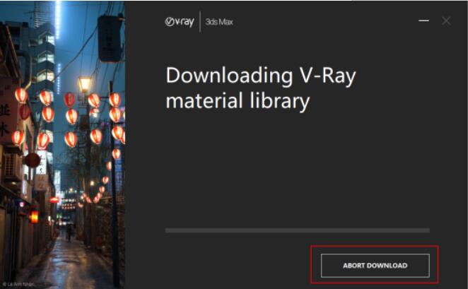 4、點(diǎn)擊ABORT DOWNLOAD,因?yàn)樵诰€安裝材質(zhì)庫(kù),如果出現(xiàn)安裝失敗的情況,所以提前下載好了材質(zhì)庫(kù),在安裝包里面,這一步直接跳過(guò)就可以了。見下圖: