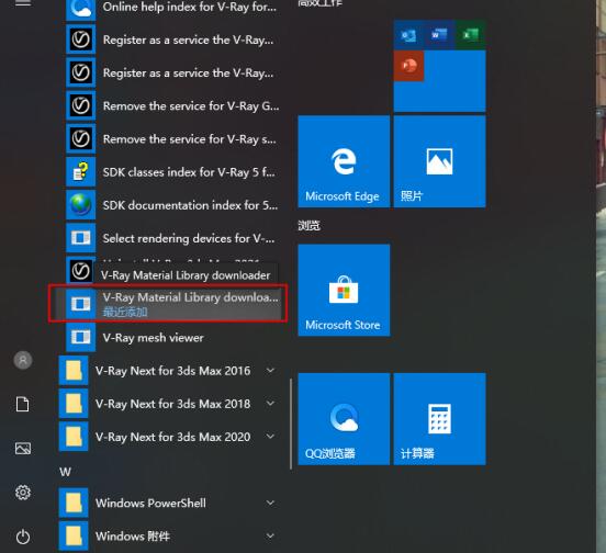 在win菜單找到VRay 5.0 For 3dmax 201XX的文件夾,啟動(dòng)V-Ray Material Library downloader,等待它提示安裝完成。