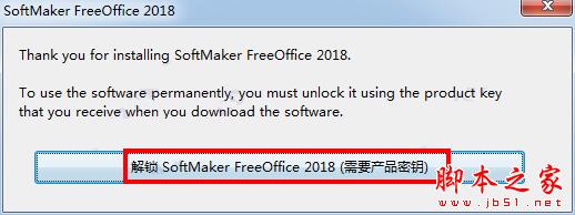 1.安裝完成后直接運(yùn)行其中的任何一個(gè)組件,點(diǎn)擊“解鎖FreeOffice 2018”