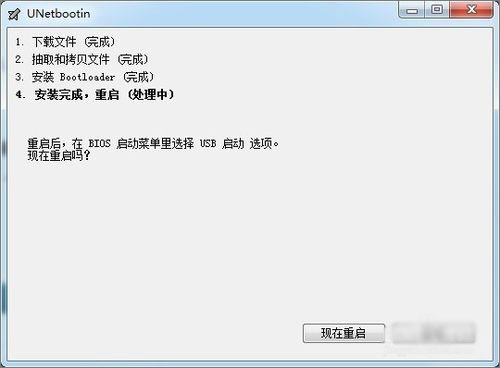 9、軟件提示要求重啟系統(tǒng),進入bios設置,然后就能用U盤引導系統(tǒng)了。