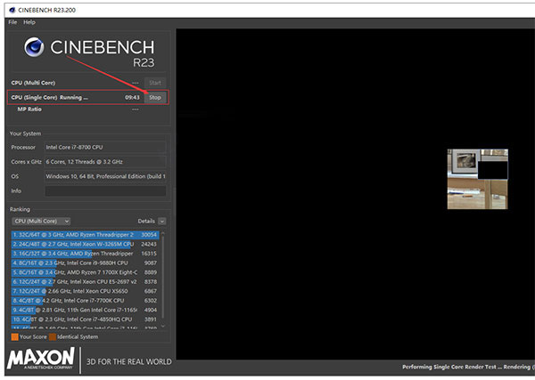 假如您使用此選項,將給予另一項名叫“CPU(單核心)”的測試選項.該項測試將在假定您的系統(tǒng)軟件僅有單珠CPU的情況下運作MAXONCINEBENCH.這將用以評定計算機實行單一標準的單核每日任務,與此同時也會測算MP比例,用以主要表現(xiàn)多核比單核心的迅速水平.除此之外,還會繼續(xù)展現(xiàn)一個比較參照,用以和電腦顯卡3D渲染參照圖象較為貼近水平.
