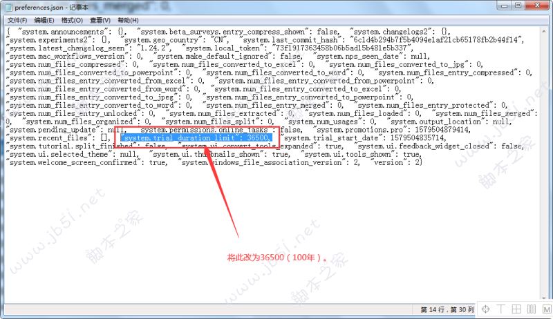 7.找到preferences.json-記事本 中,找到“system.trial_duration_limit": 5 , ”;