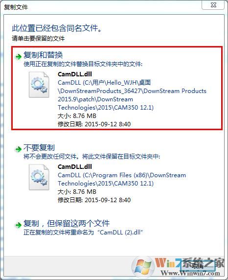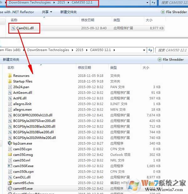 11、打開軟件包,打開patch\DownStream Technologies\2015\CAM350 12.1目錄,將其中的破解補丁“CamDLL.dll”復(fù)制到軟件安裝目錄下,可以右鍵桌面圖標(biāo)選擇打開文件位置進入安裝目錄。
