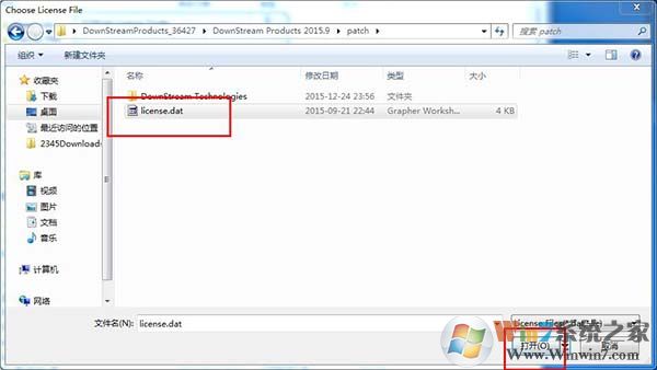 15、選擇patch目錄下的許可“license.dat”,點擊打開。