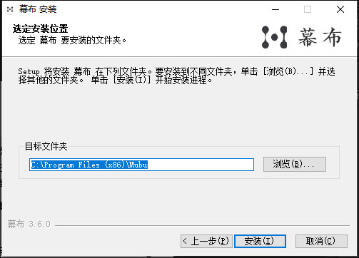 3、將軟件安裝所需要放入的默認(rèn)位置。初始安裝位置為:【C:\Program Files (x86)\Mubu】,點(diǎn)擊安裝即可。