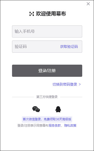 5、對(duì)于第一次注冊(cè)該軟件的用戶(hù)可以在右下角點(diǎn)擊創(chuàng)建一個(gè)賬號(hào),注冊(cè)的流程也非常檢查,只需要提供微信、qq及手機(jī)號(hào)即可完成賬號(hào)注冊(cè),并且微信新用戶(hù)登錄即可領(lǐng)取30天的高級(jí)版使用特權(quán)。