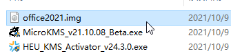 1、下載軟件包,解壓,office2021.img為鏡像文件,其他兩個(gè)為激活工具;