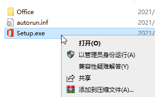 2、打開office2021.img文件后,以管理員身份運(yùn)行里面的setup.exe;