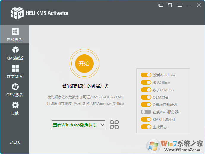 打開HEU_KMS_Activator_v24.3.0.exe工具,直接點(diǎn)擊開始;