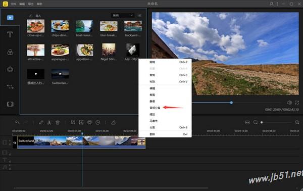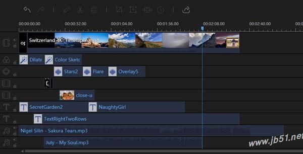 2.選擇背景材料,將其拖入下面的視頻軌道中;選擇疊加材料,將其拖到下面的圖片中。