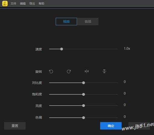 將視頻拖拽到視頻軌。點擊“編輯”按鈕可以調整速度、對比度、飽和度、亮度、色調等。也可以對視頻進行旋轉或翻轉。