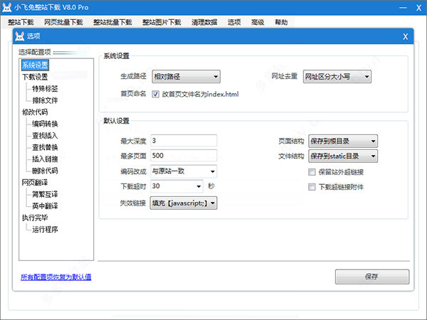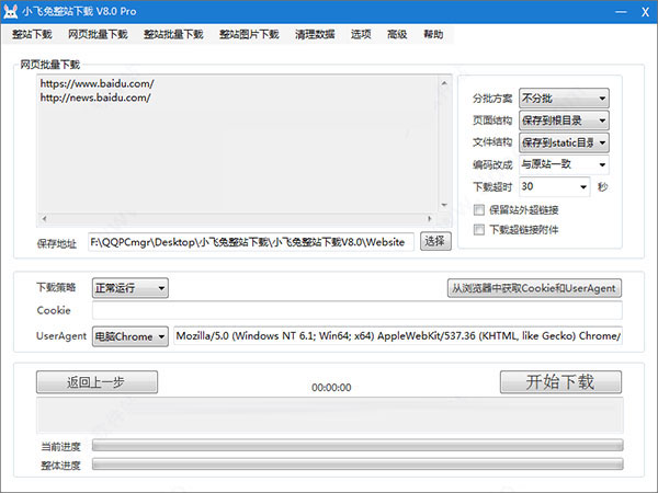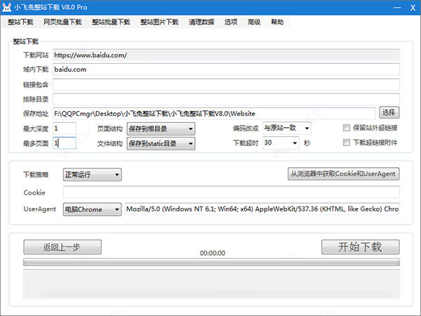 2、設(shè)置最大深度、最多頁面和保存地址后,點擊開始下載。