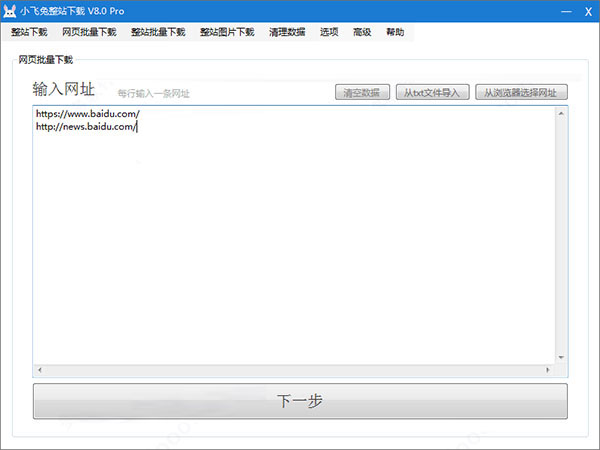 1、輸入要批量下載的網(wǎng)址。