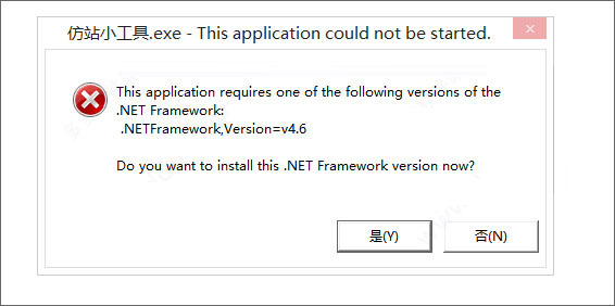 2、安裝運行環(huán)境.Net4.6以上版本,如果運行軟件報如下圖錯誤,需要安裝環(huán)境:Microsoft .NET Framework 4.6。