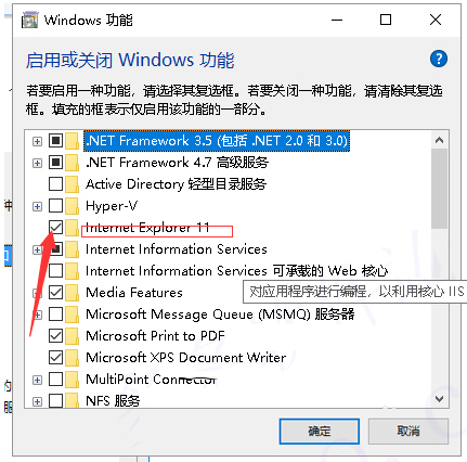 4、選擇Internet EXPLORE11選項(xiàng)框,取消勾選。