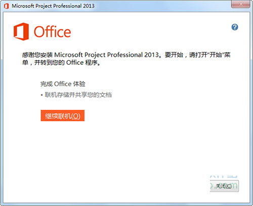 6、安裝完成,感謝您安裝Microsoft Project Professional 2013。要開始,請打開‘開始"菜單,并轉(zhuǎn)到您的Office程序。如圖: